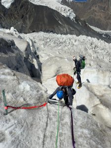Ya en la zona baja del glaciar o «lengua glaciar» nos desencordamos para ir más rápido, aquí el terreno ya no tiene peligro. Sobre las 12:50 ya estábamos de nuevo en C1, fuimos directos a las mismas carpas que teníamos, por si con un poco de suerte estaban libres, que las vistas desde ahí eran tremendas.